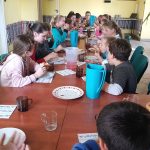 Ezek után a kellően éhes gyerekcsapat pillanatok alatt végére járt a frissen sült kemencés kenyérlángosnak, sőt a ráadásnak is. Egyértelmű bizonyosságot nyert, hogy ezt az egyszer és finom magyar étellel mindenki szereti.Ebéd után egy kis kedvcsinálót tartottunk nagyobb hittanosaink segítségével a hagyományőrző íjászatból. A nagy érdeklődésre való tekintettel, elképzelhető, hogy az íjászkörünket a kisebbek számára is nyitottá tesszük.